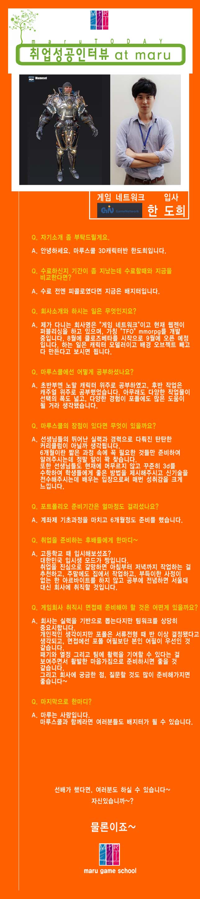 마루게임스쿨에서 취업한 교육생의 인터뷰입니다.