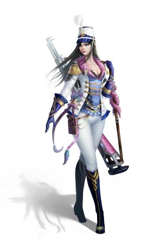 거대한 장총을 사용하는 여성 거너의 모습을 잘 표현한