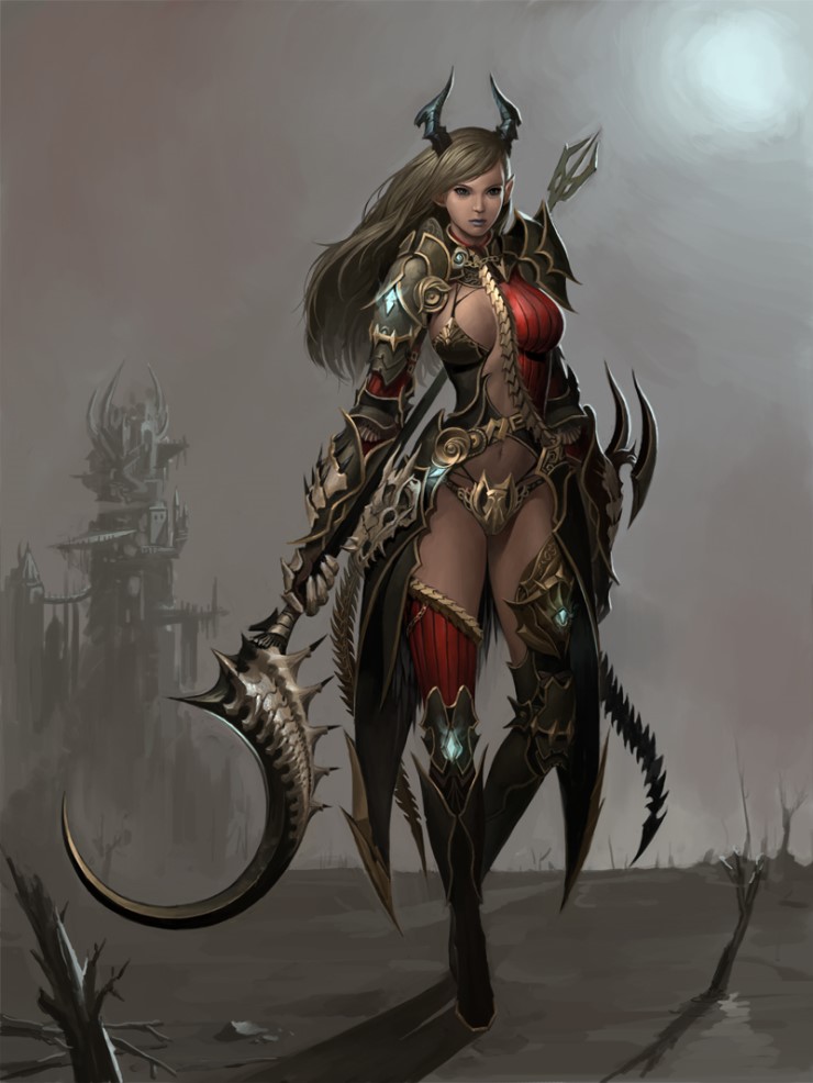 암흑마법과 주술을 사용하는 여성 주술사입니다.. 다크한 주술을 현란하게 펼칠것 같은 모습을 멋지게 표현한 작업물입니다. 손용완 학생의 작업물입니다.