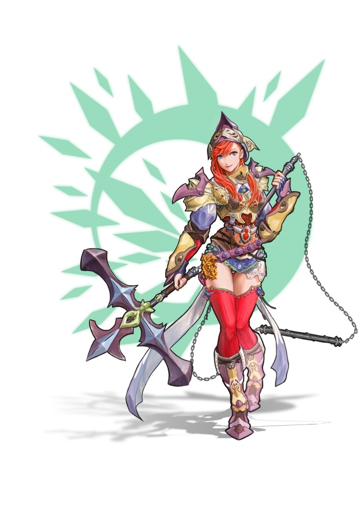 임현중 학생의 작업물입니다. 독특한 디자인의 삼절곤을 가지고 적과 대치하는 여성 성기사를 재미 있게 표현한 작업물입니다. 다양한 색감을 센스 있게 표현한 작업물입니다.
