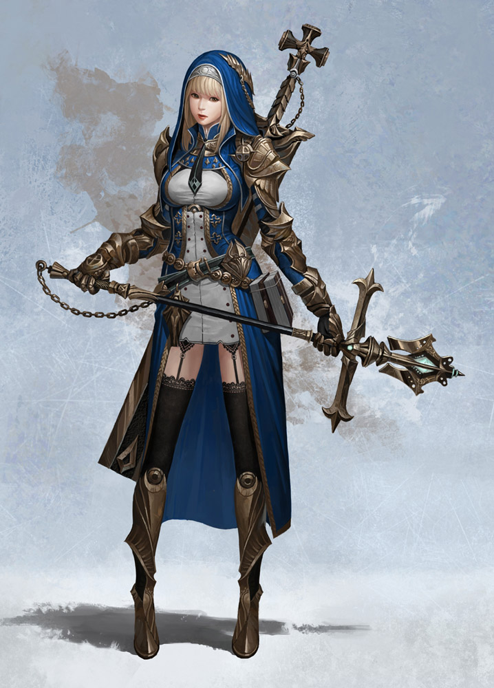 멋진 무기를 사용하는 여성 성기사를 디테일하게 표현한 작업물입니다. 손용완 학생의 작업물입니다.