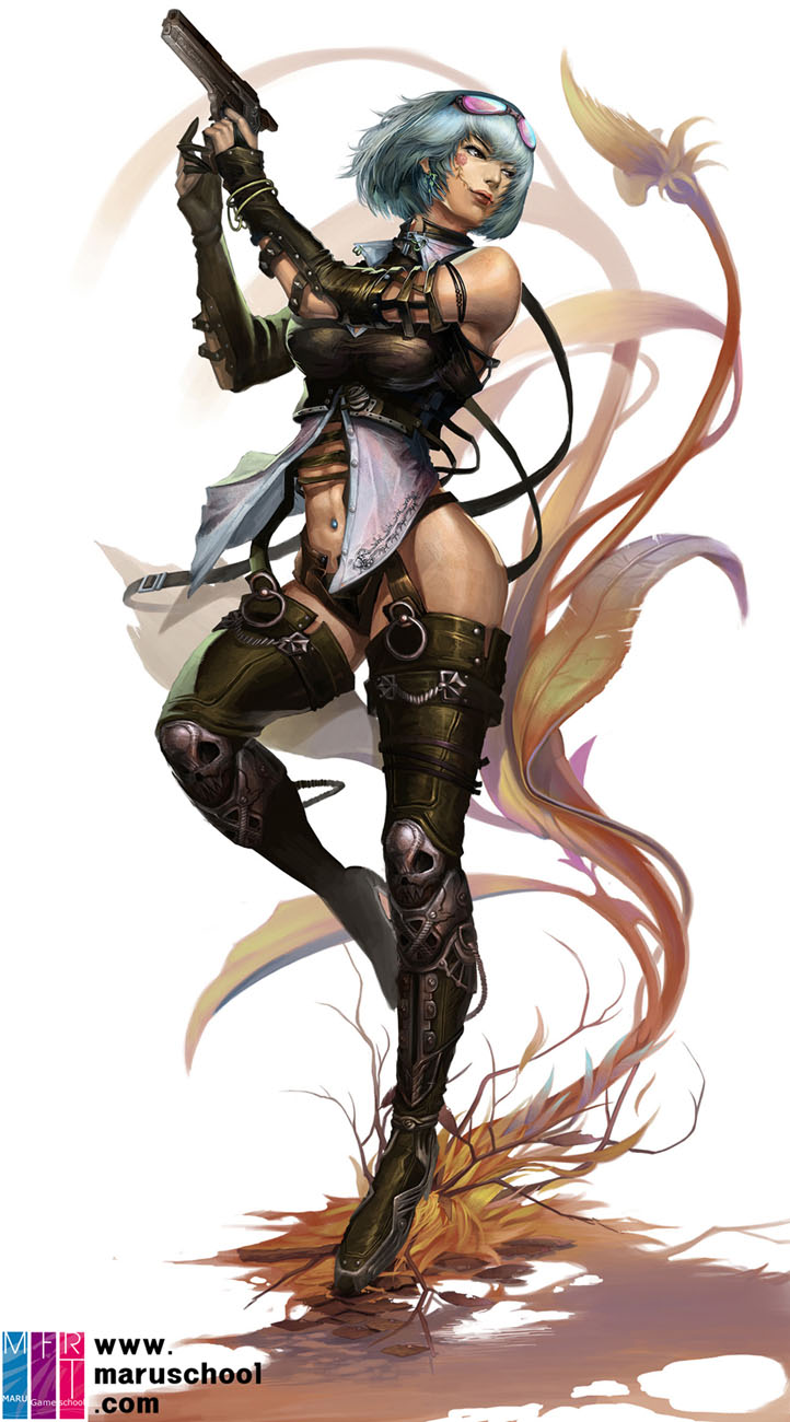 앞전에 그린 남성 거너와 한쌍이 되는 여성 거너입니다 입가에 문신이 조커를 생각나게끔 하네요