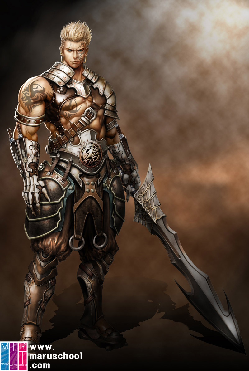 거대한 검을 사용하는 바바리안의 느낌을 잘 살린 작업물입니다 홍성훈 학생의 작업물입니다..