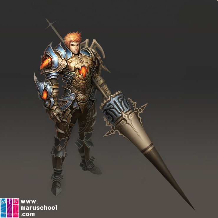 거대한 랜스를 사용하는 기사의 모습을 표현한 작업물입니다. 재미있는 디자인에 육중한 무기와 갑옷을 가지고 싸우는 전사케릭터를 재미있고 멋지게 표현했네요 ^^ 앞으로 더더욱 멋진 작업물 만들어 나가길 기대할께요~!