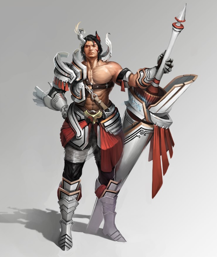 고경동 학생의 작업물입니다.. 우직한 인상에 거대한 창을 들고 먼곳을 응시하는 느낌을 잘 살린 작업물입니다. 각 부분의 세밀한 묘사와 여러곳에서 세심하게 여러가지 질감을 잘 표현한 작업물이네요 앞으로도 계속 좋은 작업물 부탁드려요