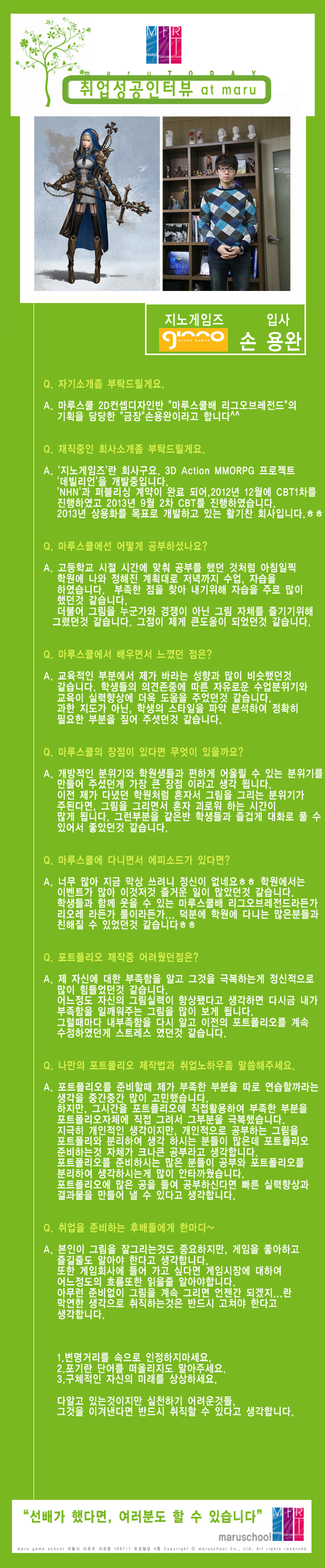 마루게임스쿨에서 취업한 교육생의 인터뷰입니다.