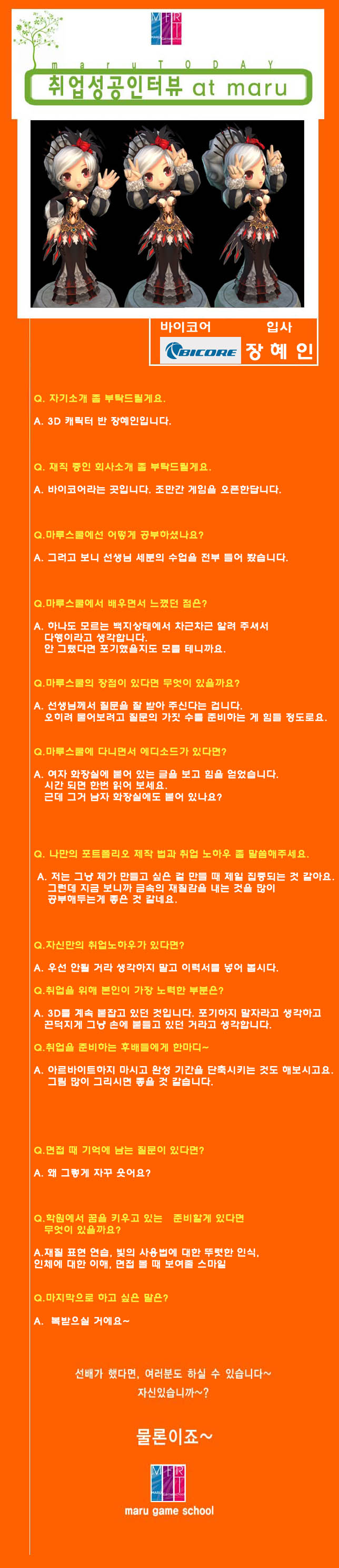 마루게임스쿨에서 취업한 교육생의 인터뷰입니다.
