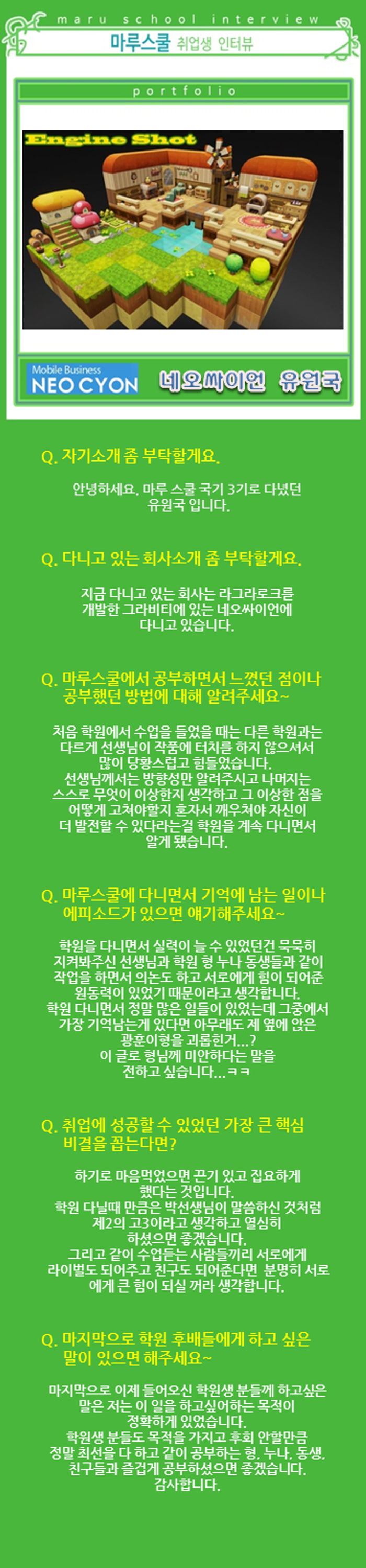 마루게임스쿨에서 취업한 교육생의 인터뷰입니다.