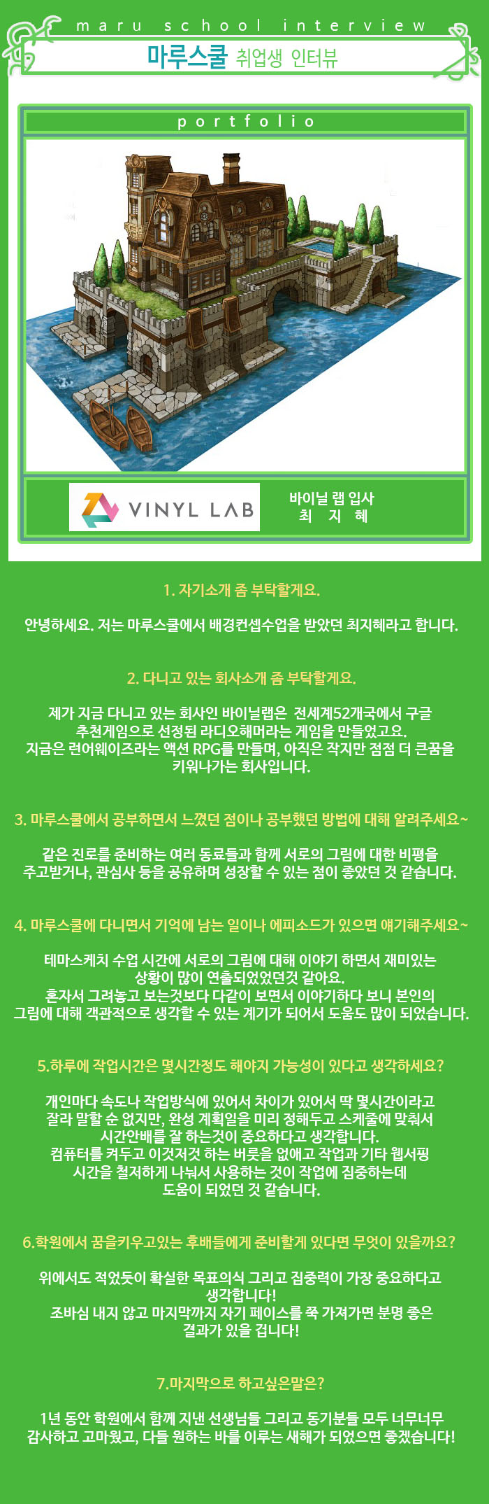 마루게임스쿨에서 취업한 교육생의 인터뷰입니다.
