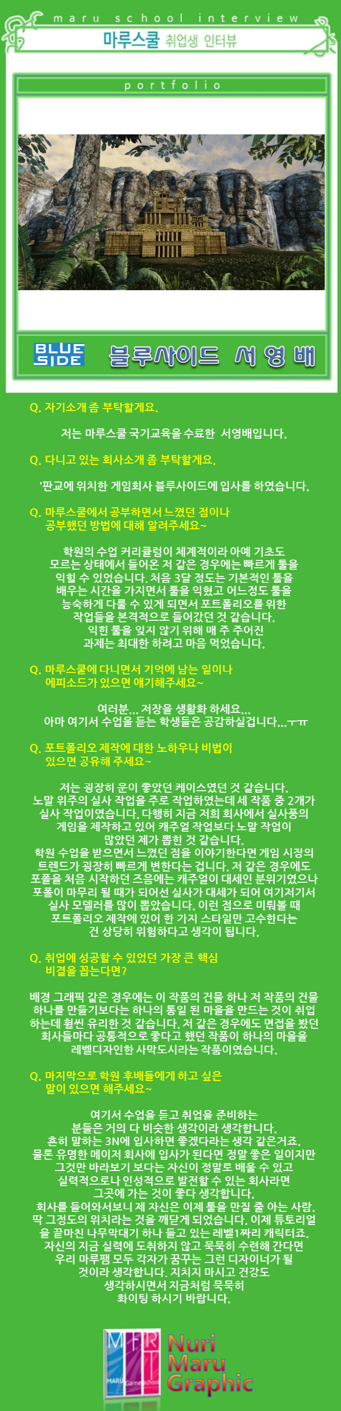 마루게임스쿨에서 취업한 교육생의 인터뷰입니다.