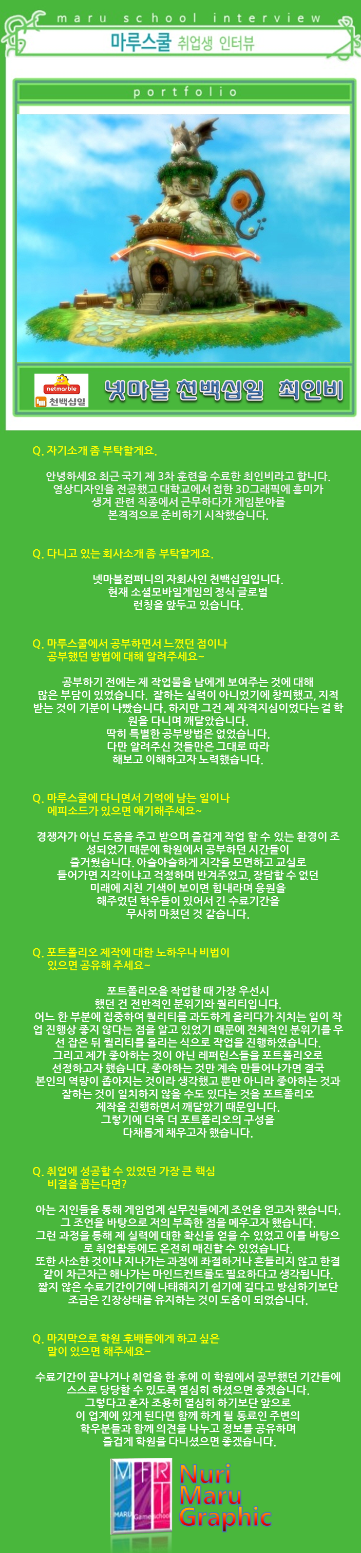 마루게임스쿨에서 취업한 교육생의 인터뷰입니다.