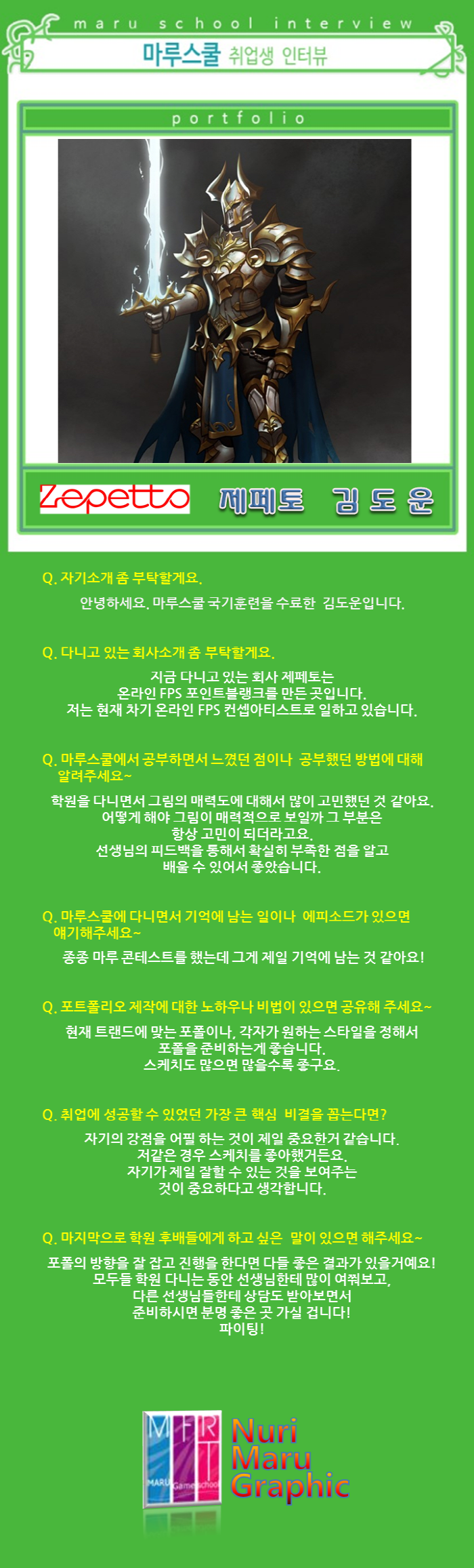 마루게임스쿨에서 취업한 교육생의 인터뷰입니다.
