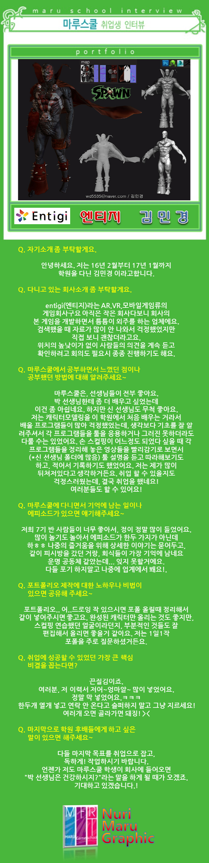 마루게임스쿨에서 취업한 교육생의 인터뷰입니다.