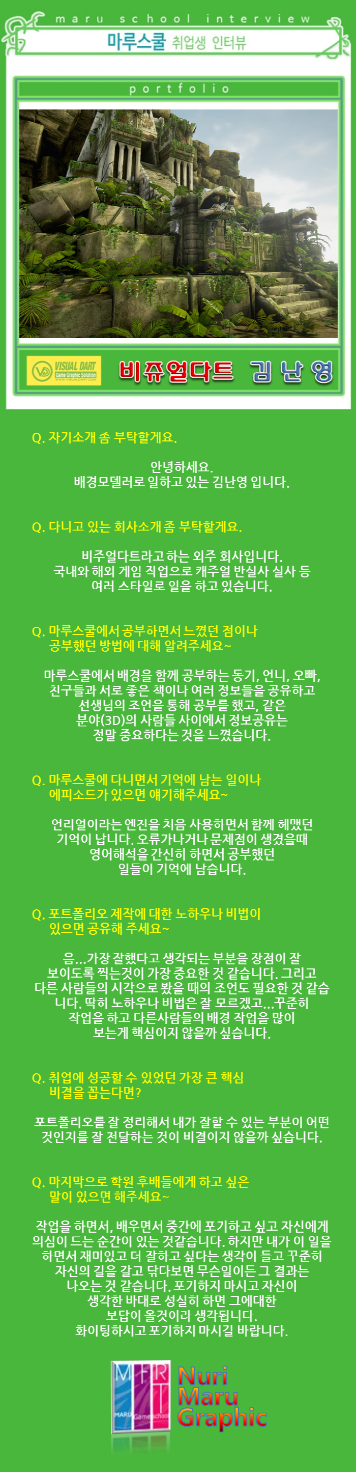 마루게임스쿨에서 취업한 교육생의 인터뷰입니다.