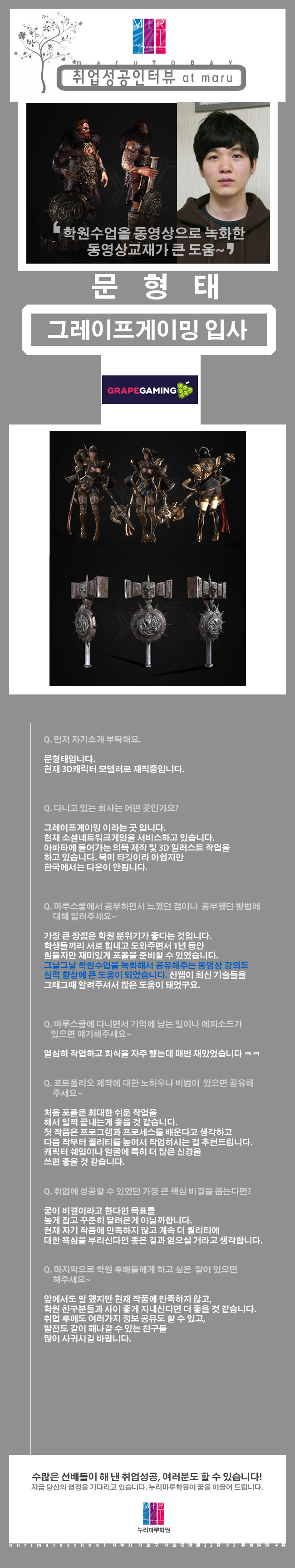 마루게임스쿨에서 취업한 교육생의 인터뷰입니다.