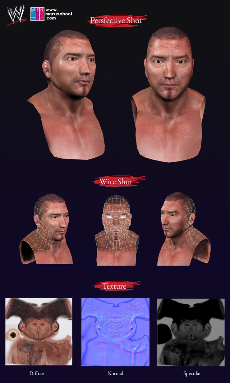 노말맵을 처음 배운후 작업한 바티스타 입니다. 스컬프팅부터 맵핑까지 훌륭하게 해주었네요 ^